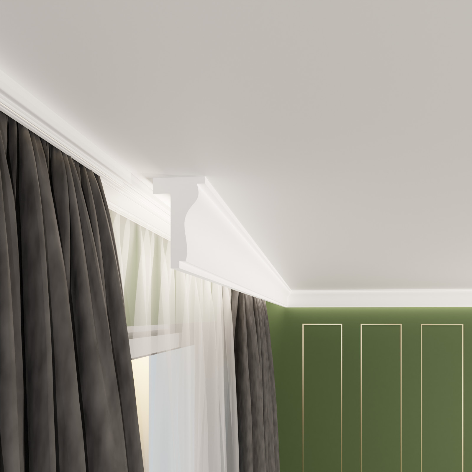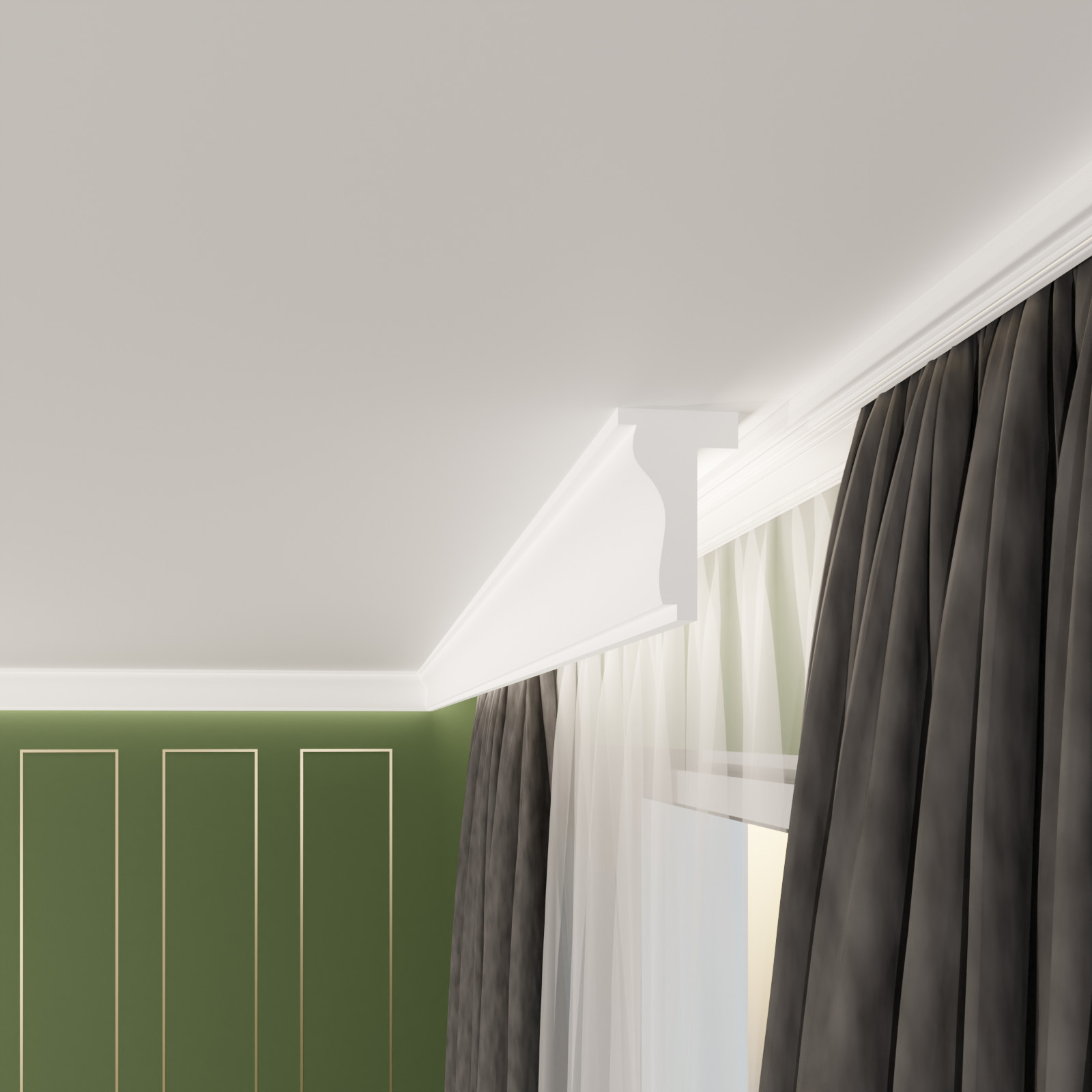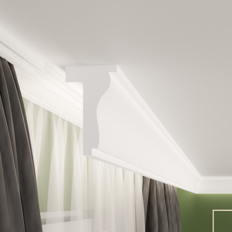 Entdecken Sie die stilvolle Lösung zur Abdeckung Ihrer Gardinenstange: unsere Gardinenleiste K-04. Perfekt für Wohnzimmer, Schlafzimmer, Badezimmer oder Kinderzimmer, vereint diese hochwertige Leiste Funktionalität und Design, um eine elegante Raumgestaltung zu ermöglichen.
